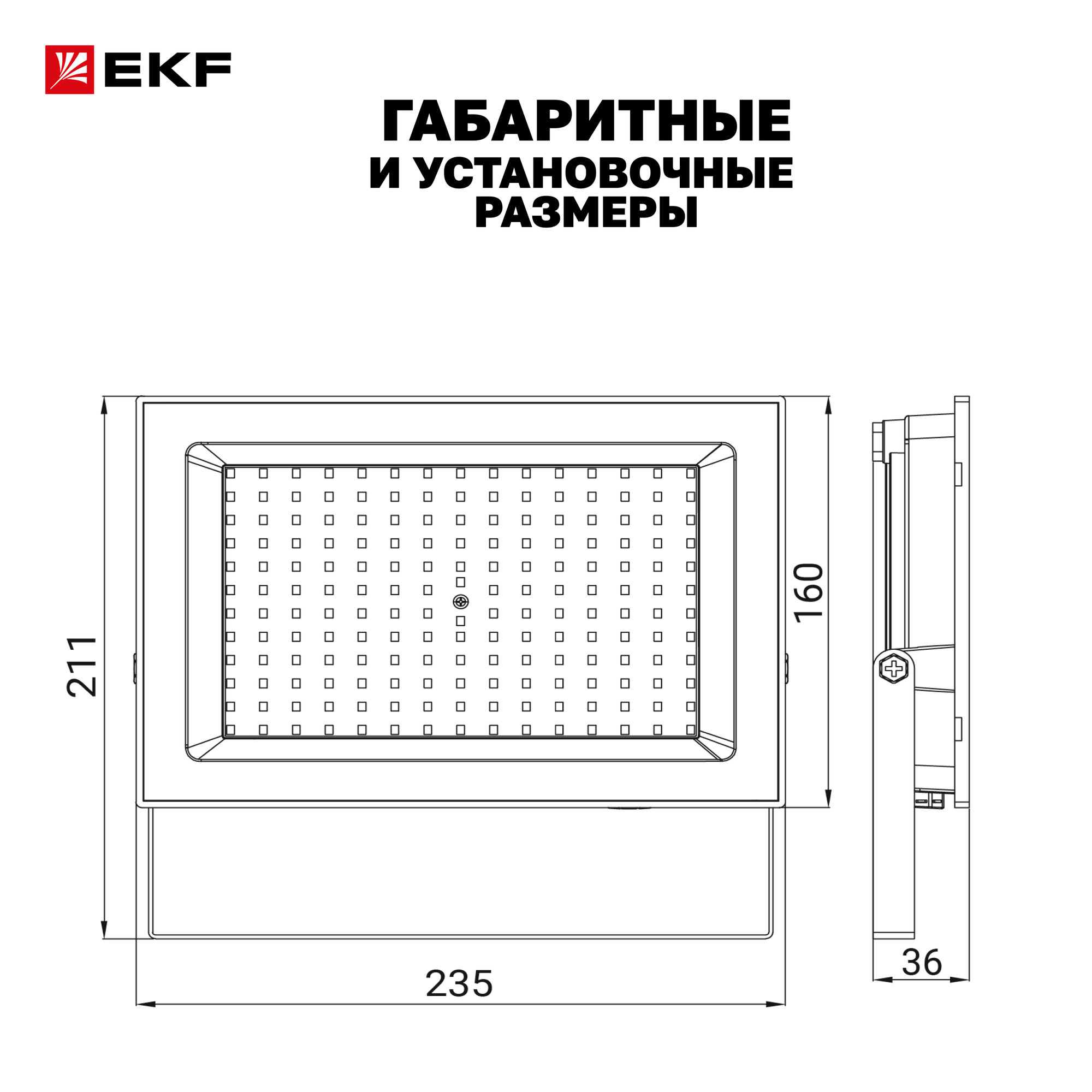 Светодиодный прожектор Ekf СДО-3006 100Вт 6500К IP65 Basic FLL-3006-100-6500