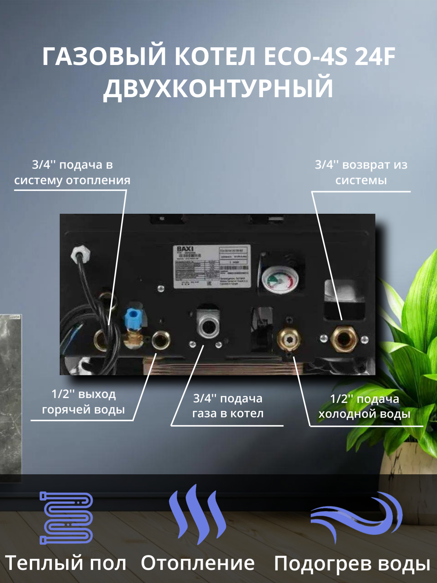 СохранитьНастенный газовый котел BAXI ECO 4S 24F, двухконтурный, закрытая камера сгорания, турбированный интересное: