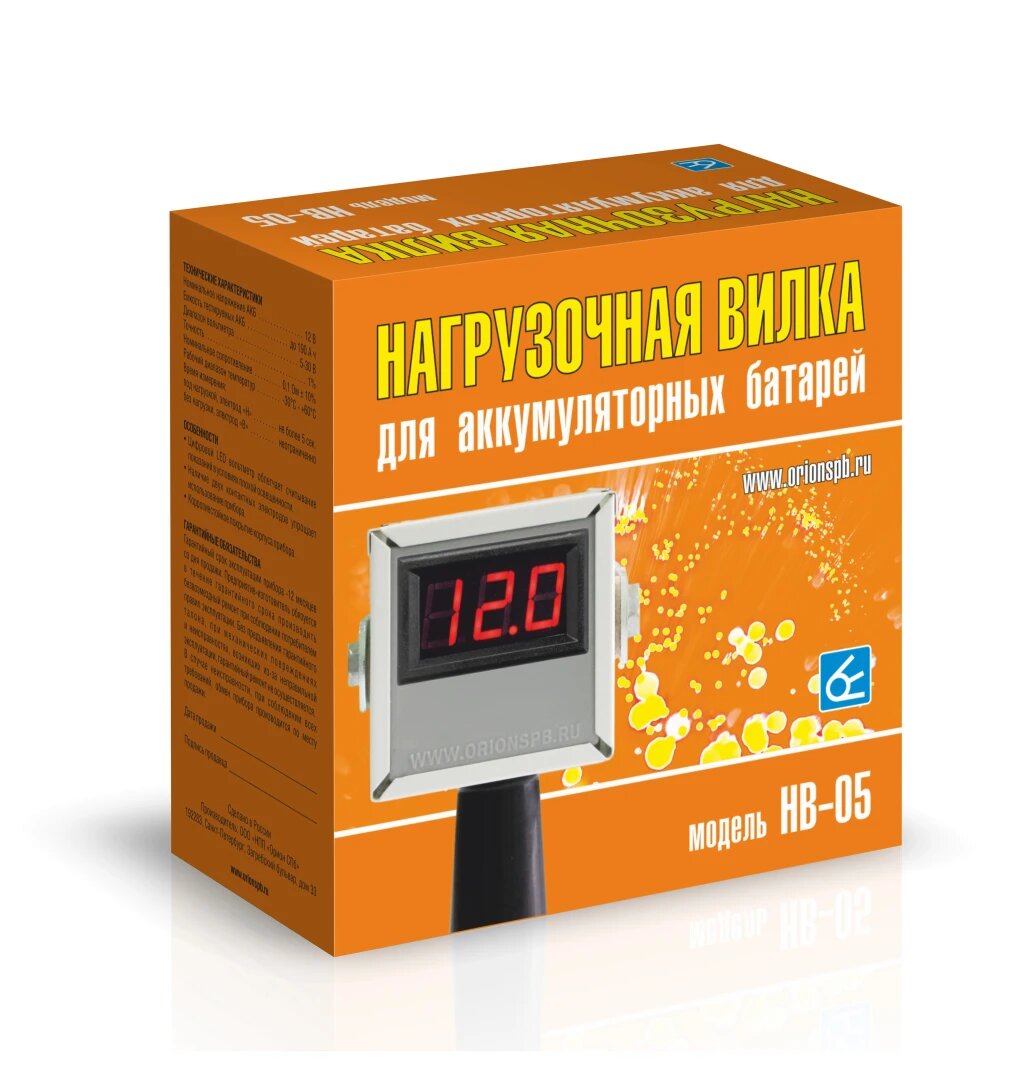 СохранитьВилка нагрузочная для проверки АКБ НВ-05 (Цифровой вольтметр, 100А), НВ05 орион НВ-05 интересное: