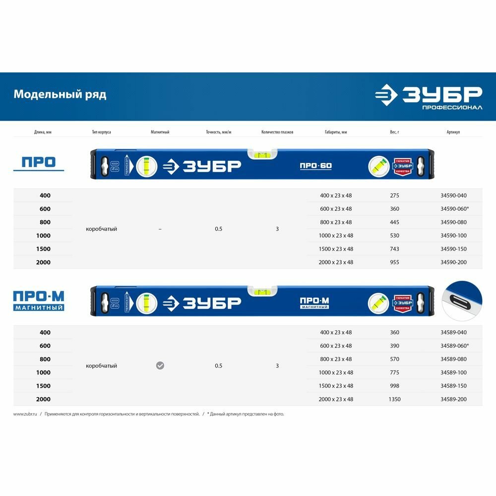 ЗУБР 600 мм, Усиленный уровень, Профессионал (34590-060)