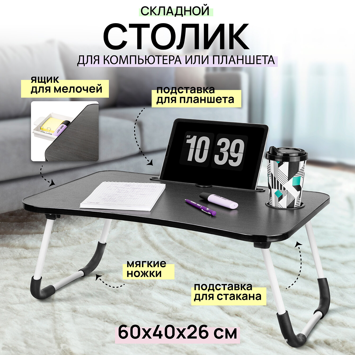 Складной столик для компьютера, ноутбука 60х40х26 см EL Casa, черный интересное: