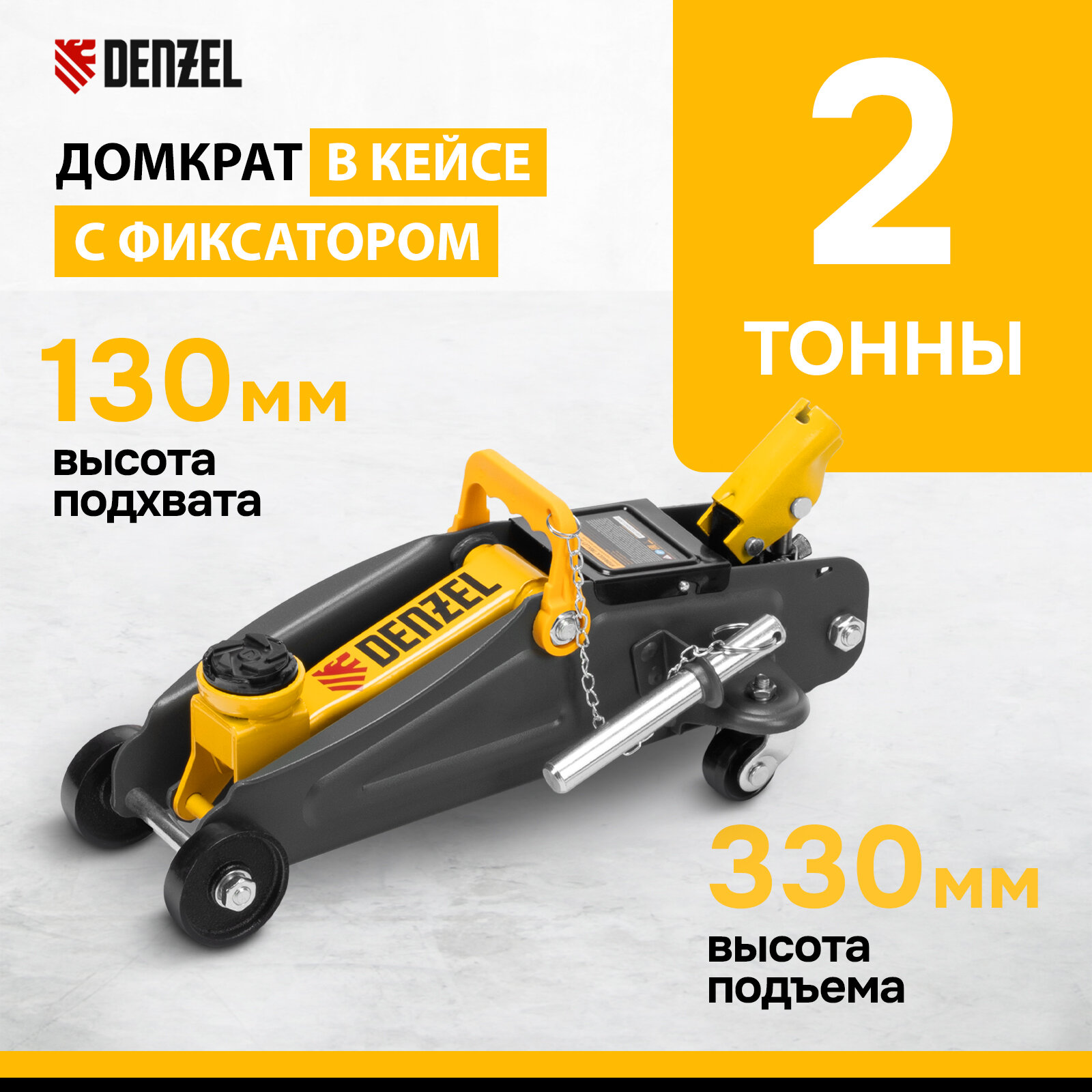 Домкрат гидравлический подкатной с фиксатором Denzel 2 т, 130-330 мм, в кейсе 51154