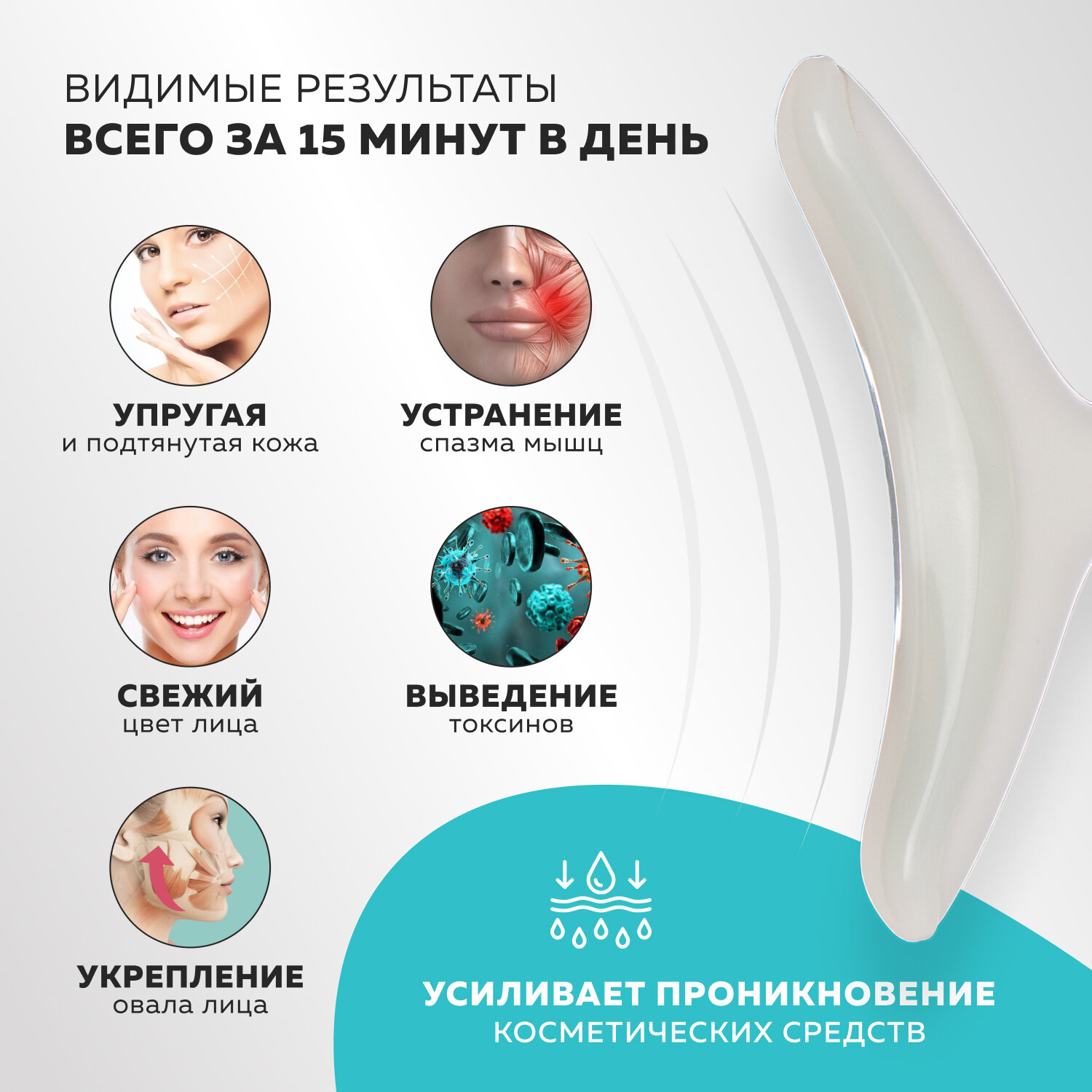 Массажер-скребок гуаша и микротоки для лица m915