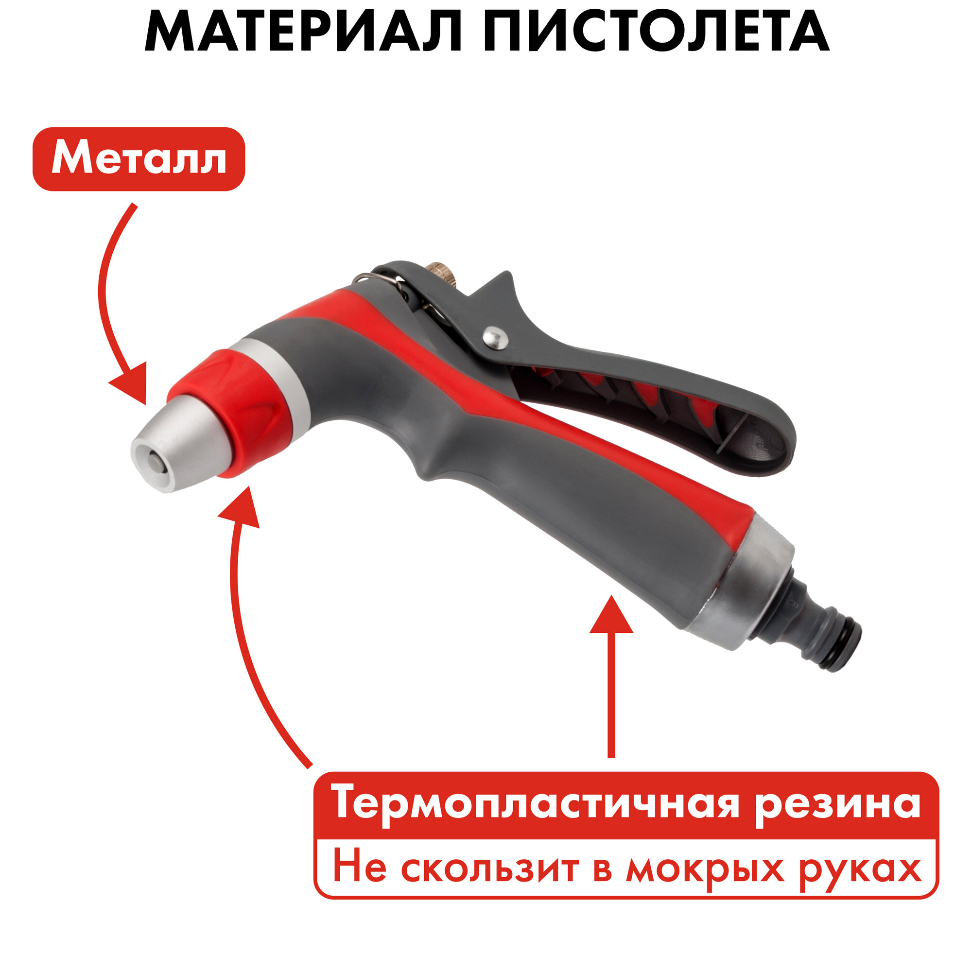 Купить Пистолет поливочный 1-режимный металл + мягкий пластик, регулировка напора QUATTRO ELEMENTI