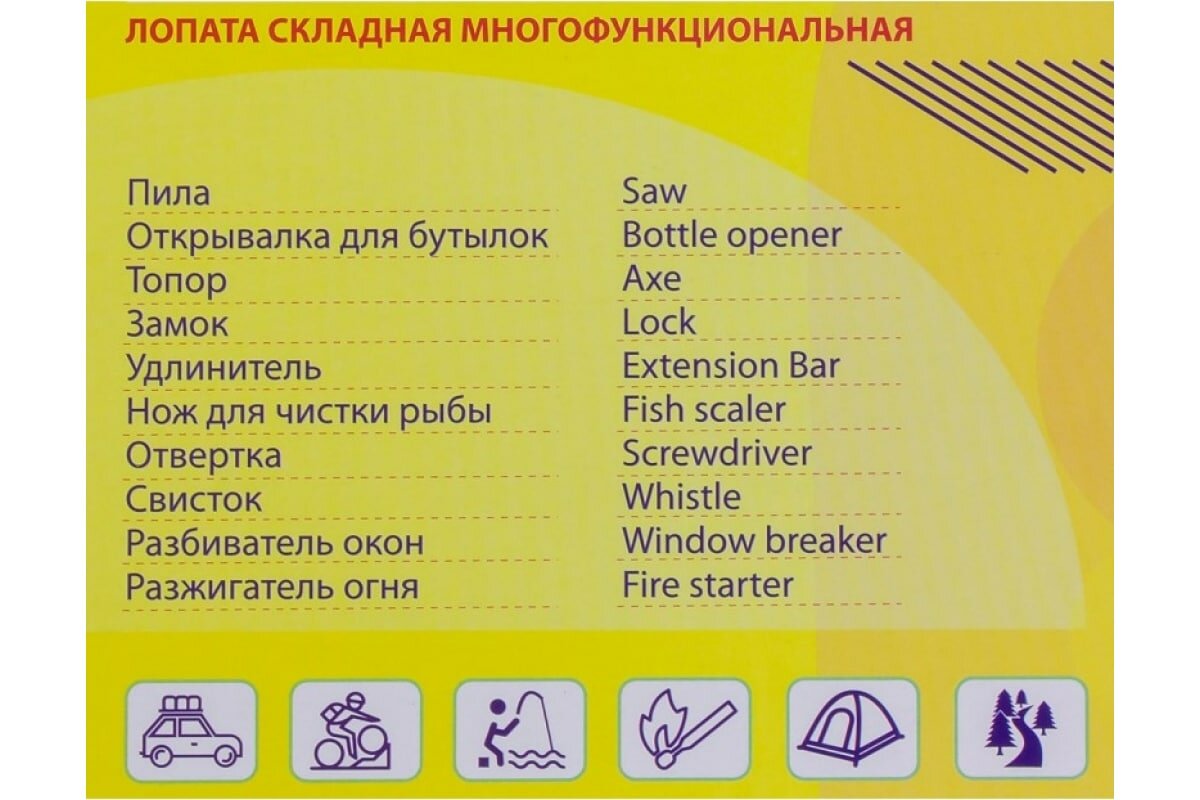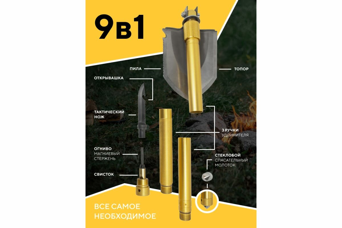 WMC-171U Лопата складная многофункциональная9в1(3ручки удлинителя,спасательный молоток,свисток,тактический нож,топор,пила,открывашка,магниевый стержень)в чехле