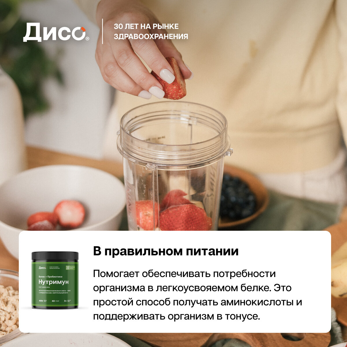 Дисо Нутримун - смесь белковая, протеин с пребиотиком для питания детей с 3 лет и взрослых, беременных и кормящих, пожилых 400гр 40 порций интересное: