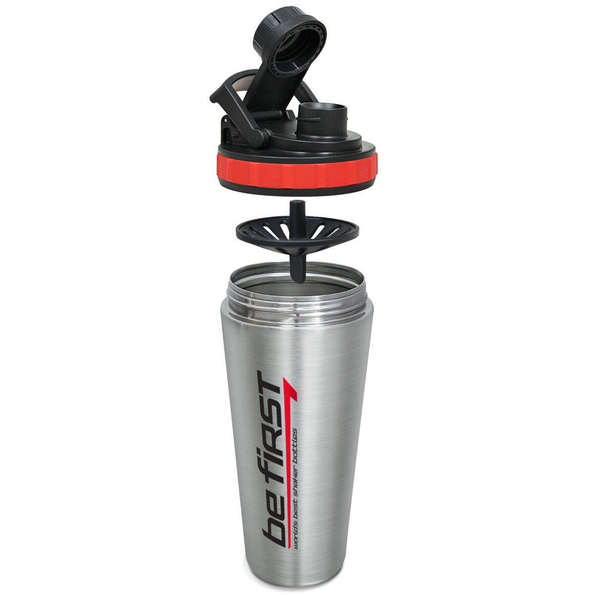 Шейкер Be First 800 мл стальной с сеткой, черная крышка (TS 11106-STEEL)