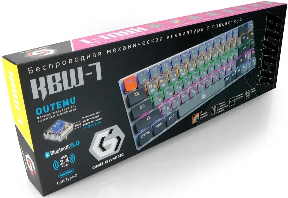 | Плюсы: | Недорогая механическая клавиатура, даже подсветка есть. Клавиши не люфтят, очень приятно нажимаются. Есть три профиля Blutooth, что удобно для переключения между устройствами, которые находятся поблизости друг к другу, а также еще просто приёмник 2.4 (воткнул в свой компуктер).