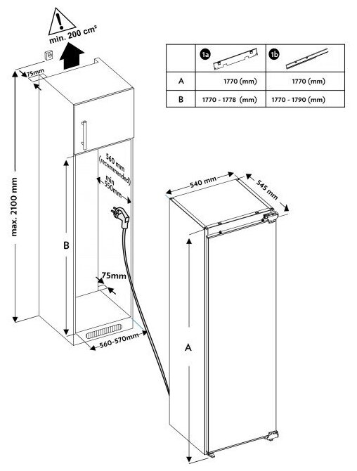 светодиодная подсветка, система контроля влажности, антибактериальное покрытие камеры; размер ниши для встраивания (ВхШхГ), мм: 1770-1790 х 560-570 x 550-560