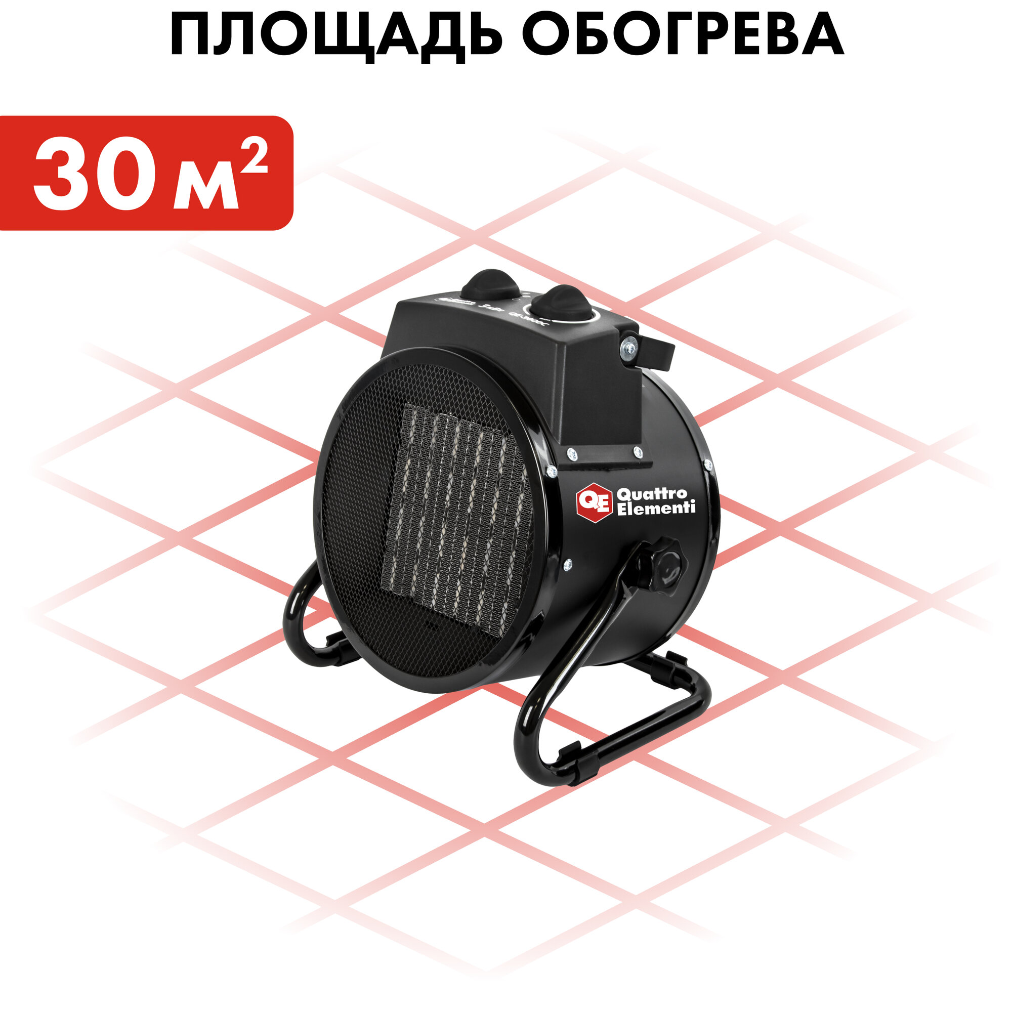 QUATTRO ELEMENTI QE-3000 C Пушка тепловая 3.0кВт 260куб.м/ч керамическая электрическая QUATTRO ELEMENTI