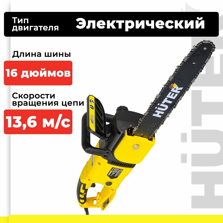 Электропила Huter ELS-2,7, 2000 Вт, скорость пиления 13,6 м/с, шина - 40 см, автоматическая смазка