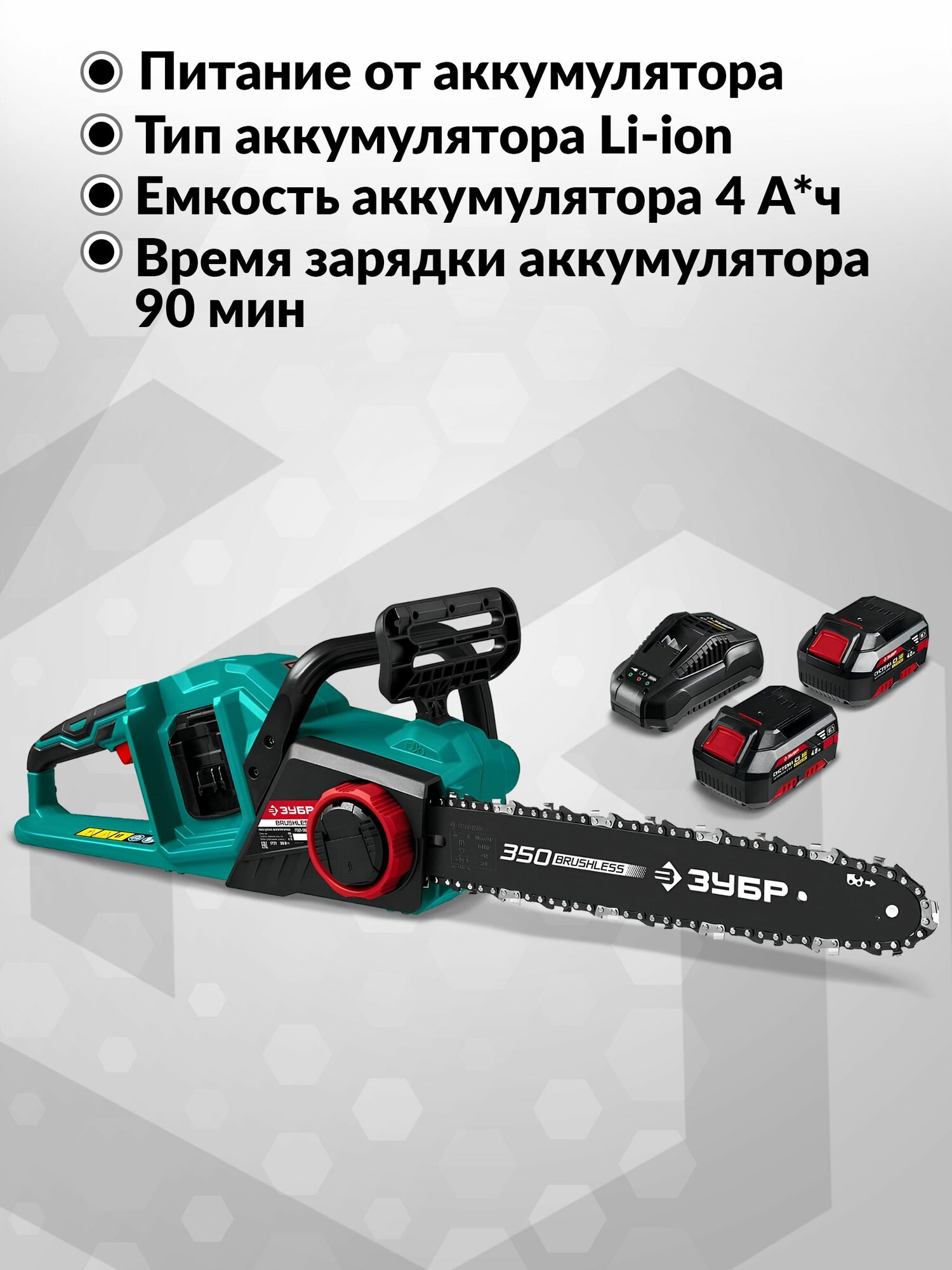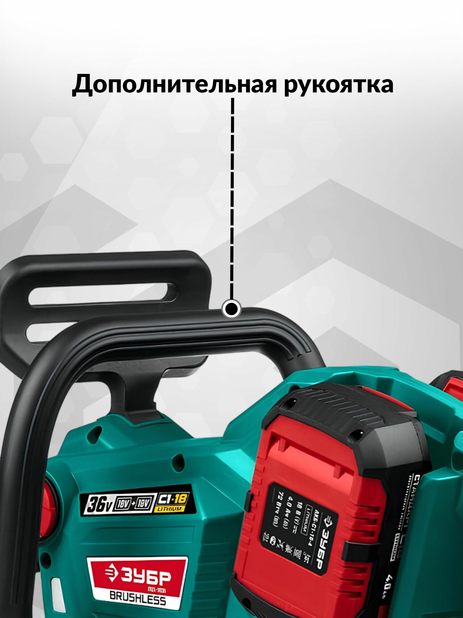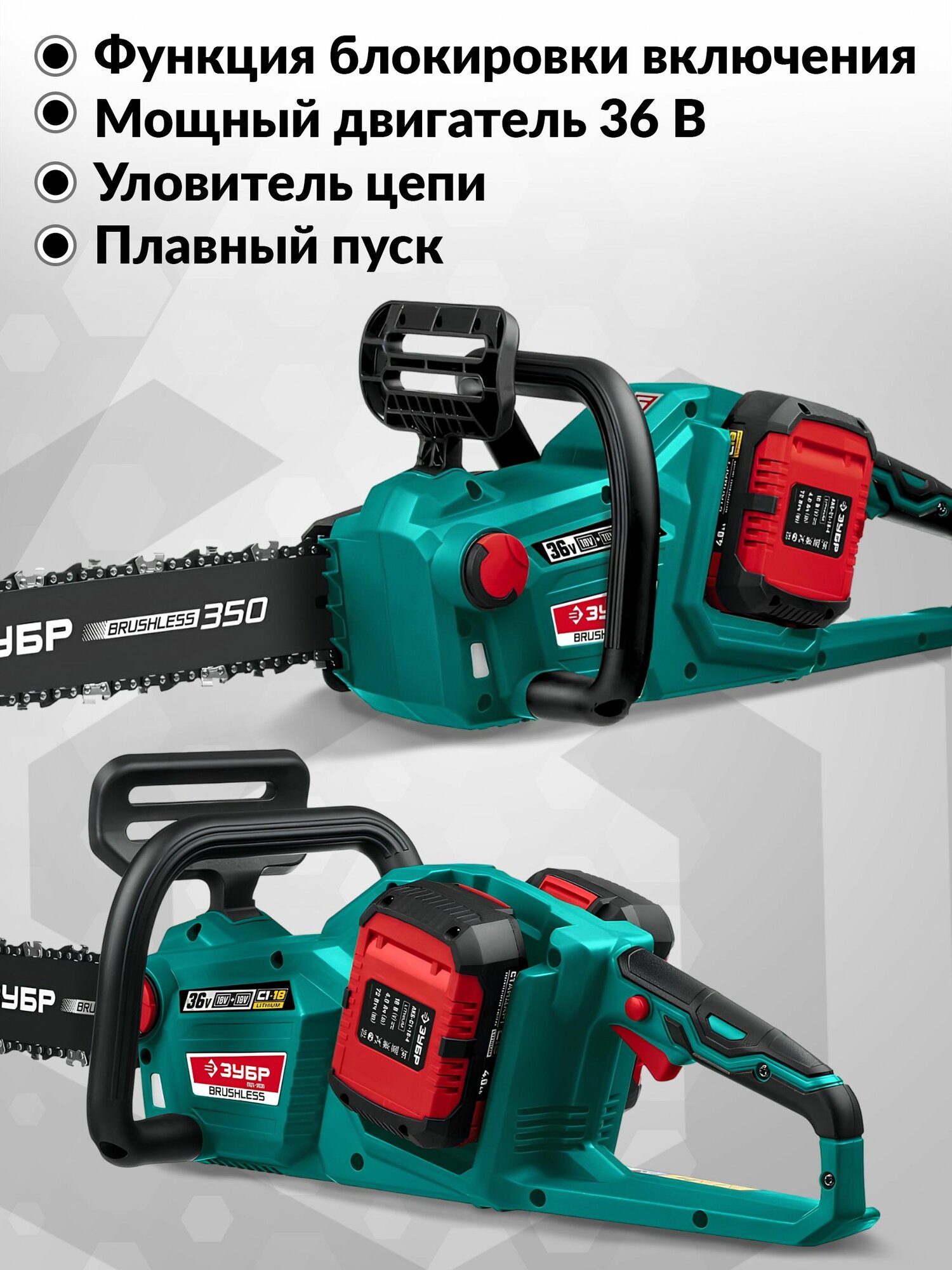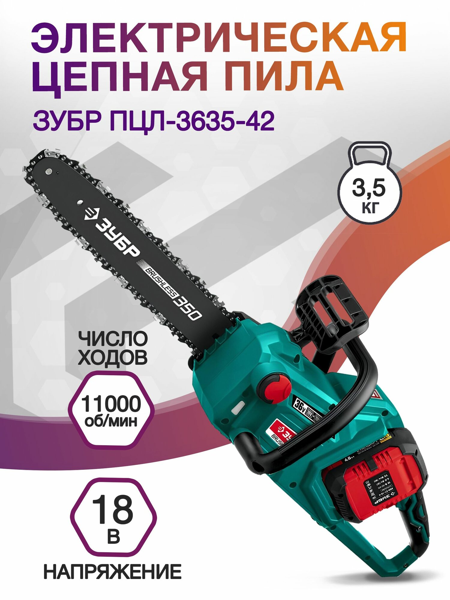 Бесщеточная цепная пила ЗУБР 2x18 В, 4 А*ч ПЦЛ-3635-42