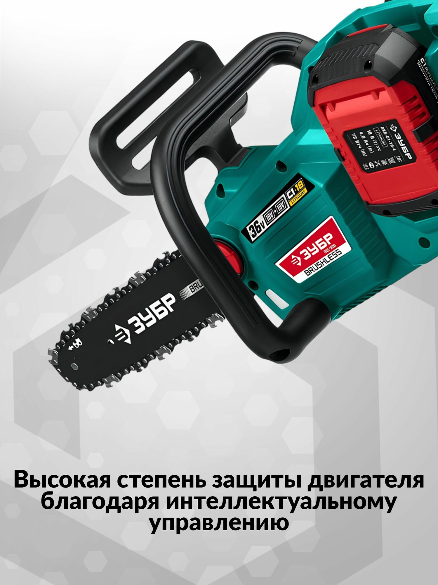 ЗУБР 36В бесщеточная пила цепная, 2х18В АКБ (4Ач). ПЦЛ-3635-42