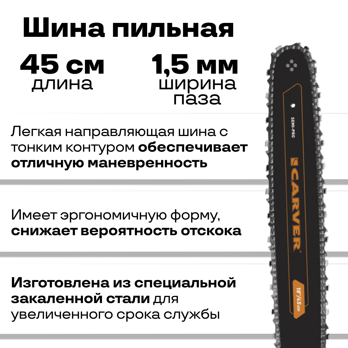 Бензопила CARVER RSG 352, 18", 2000 Вт, 2.7 л.с. 01.004.00044
