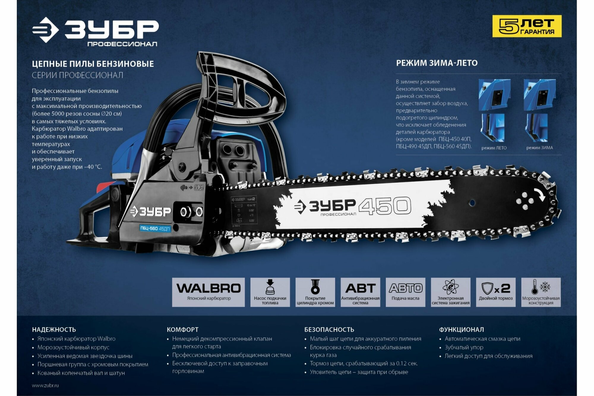 | Функции и возможности | антивибрация, тормоз цепи |