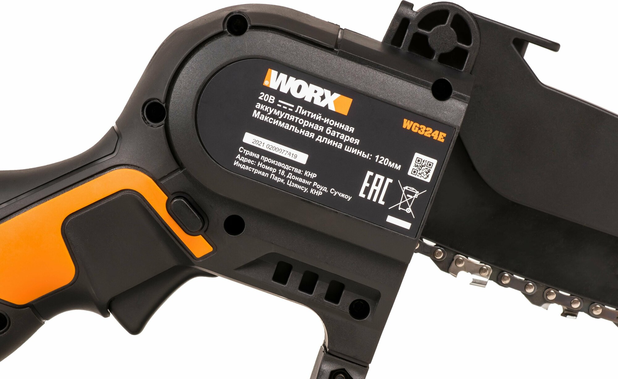 Пила компактная аккумуляторная WORX WG324E.9 20В без АКБ и ЗУ, шина 12 см