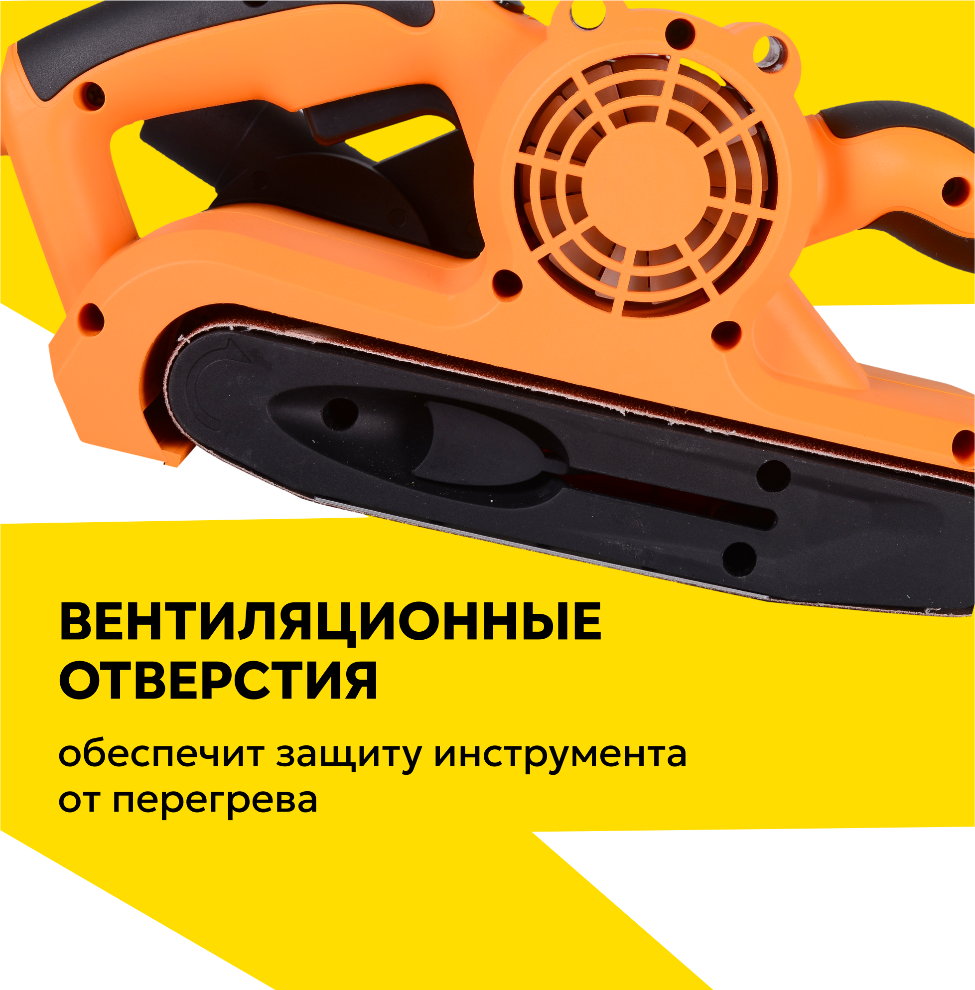 Брал для работы на даче. Надёжный захват обеспечивают рукоятка и направляющая ручка. Шлифует отлично. Ход плавный, без рывков. Положение ленты можно регулировать.