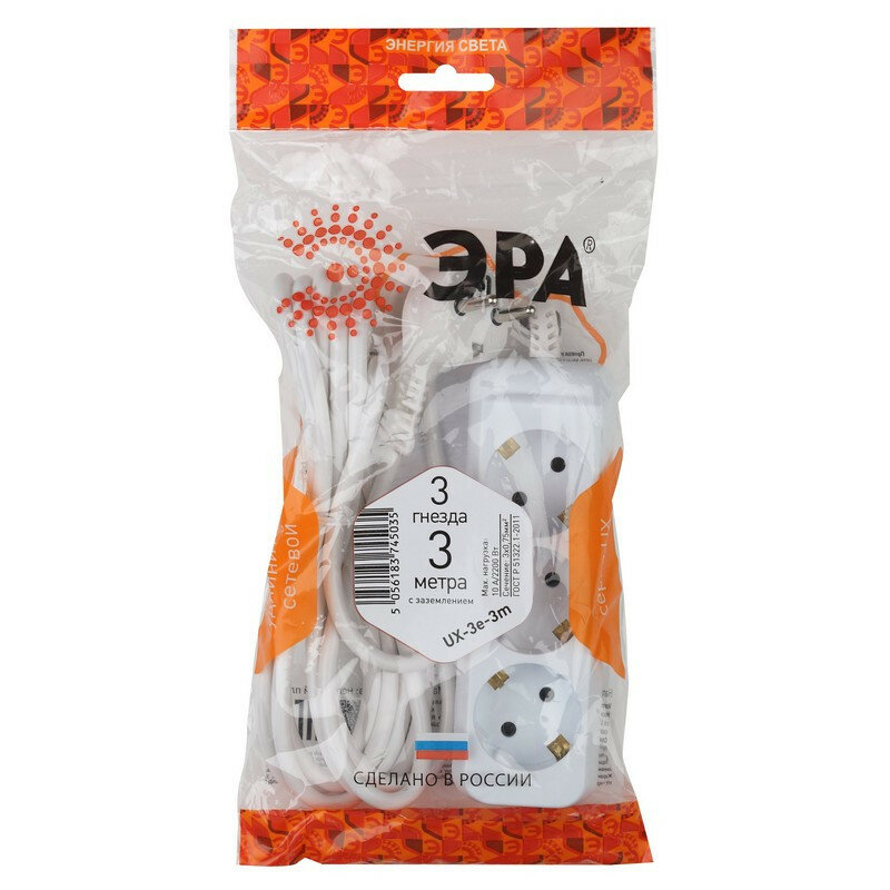 ЭРА UX-3e-3m c заземлением, 3x0,75мм2, 3гн, 3м (5/20/720)