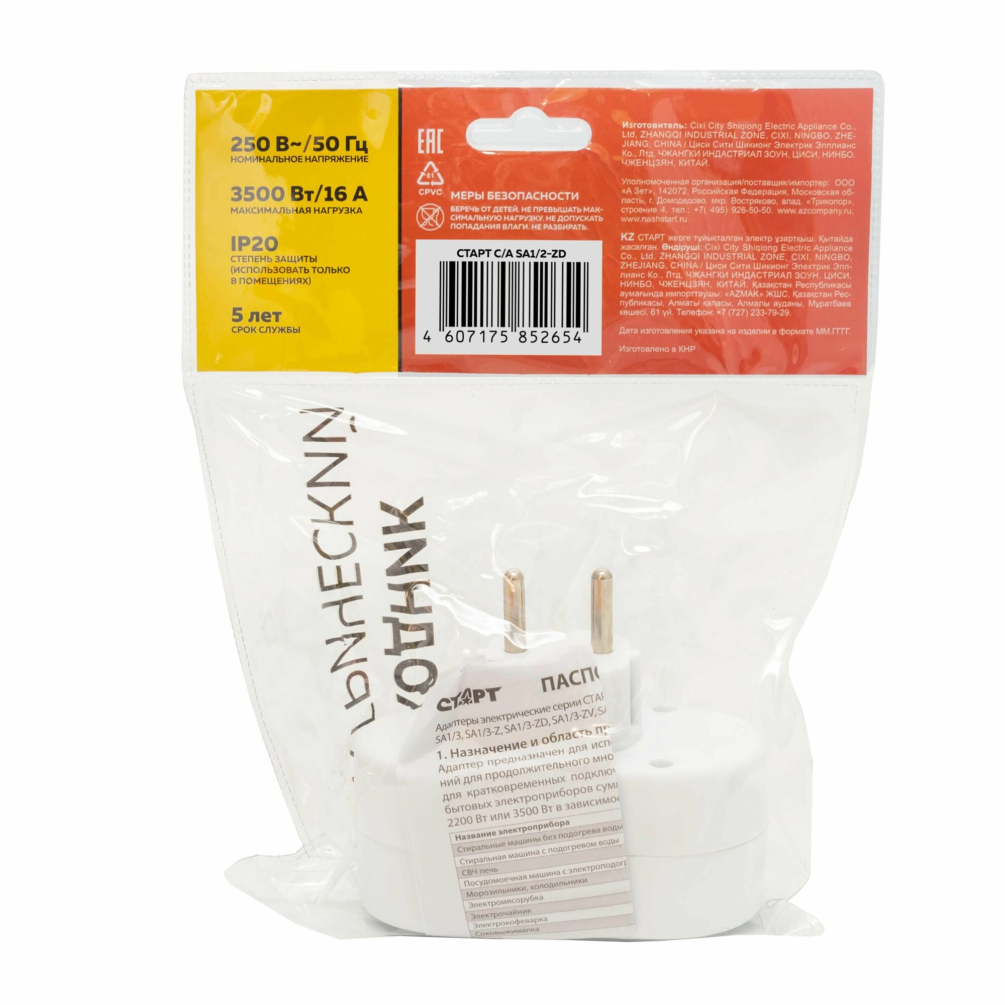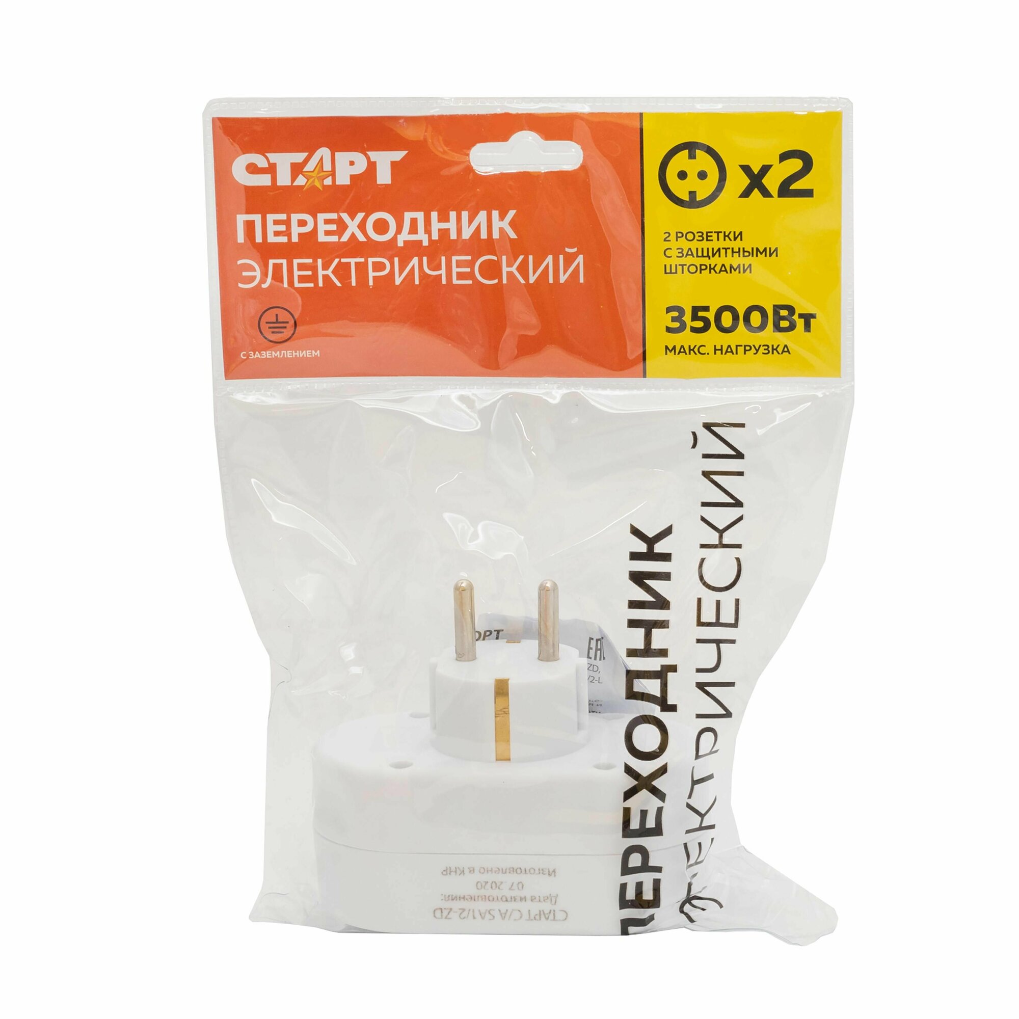 Сетевой адаптер Старт SA1/2-ZD, 2 розетки, белый