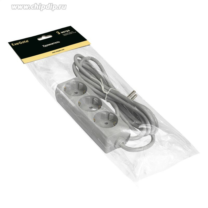 Удлинитель ExeGate ECE-3-3G (3 евророзетки с заземлением, 3м, серый) EX285805RUS