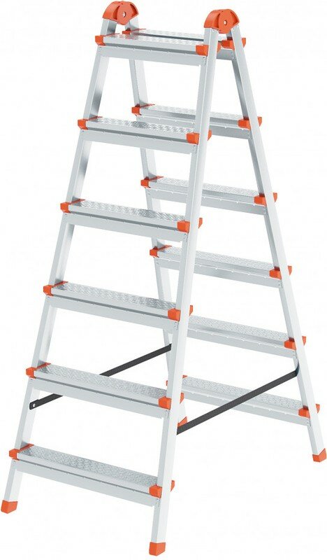 Стремянка двухсторонняя 6 ступеней, сталь профиль, стальные ступени, Россия Сибртех
