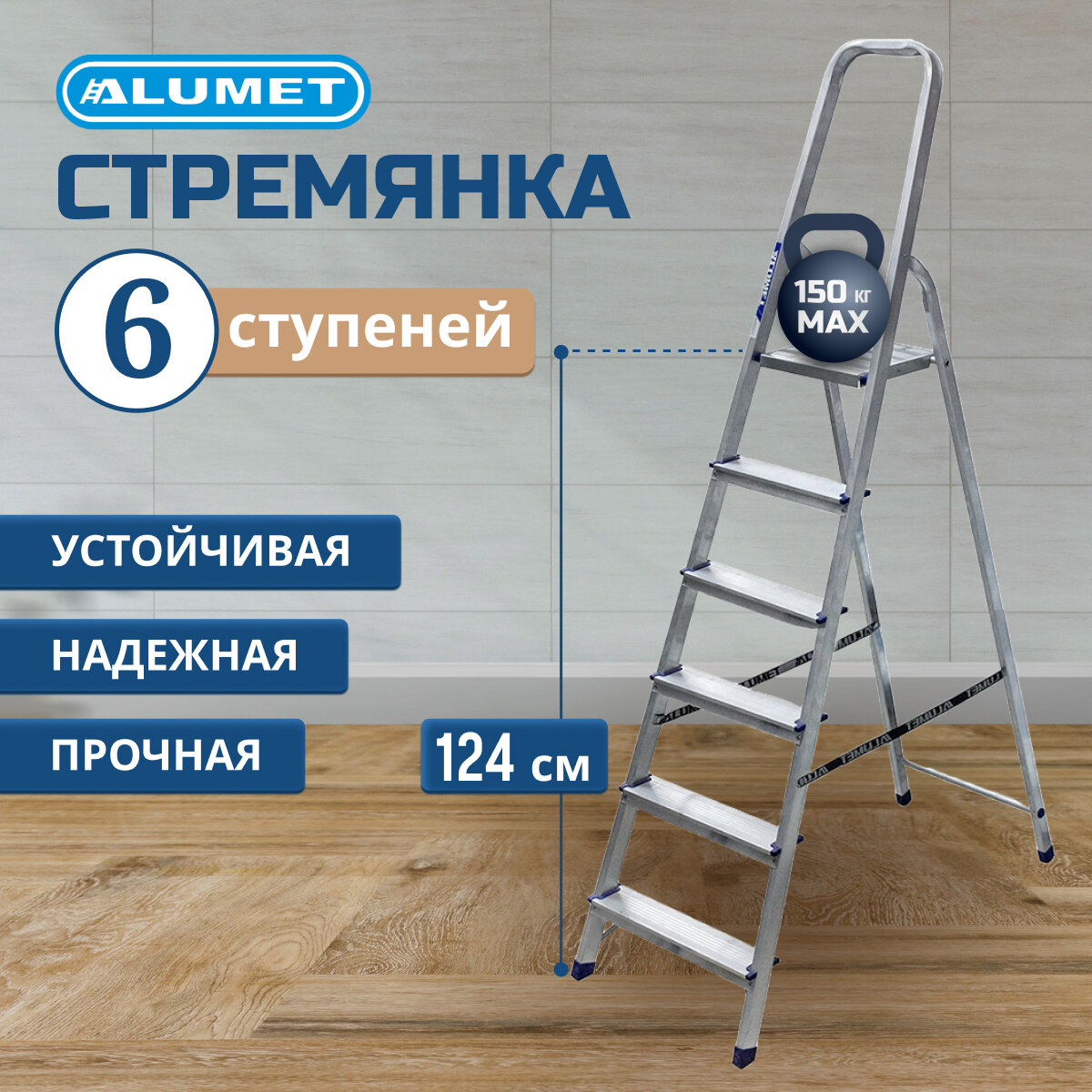 Стремянка Alumet Стремянка алюминиевая односторонняя 6 ступеней АМ706