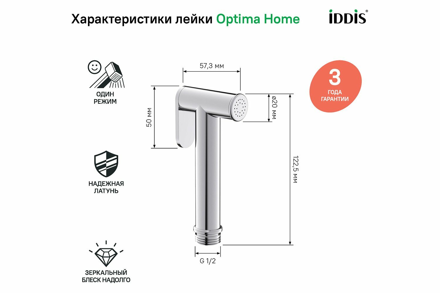 Гигиеническая лейка IDDIS Optima Home 020SB0Gi20 глянцевый хром латунь