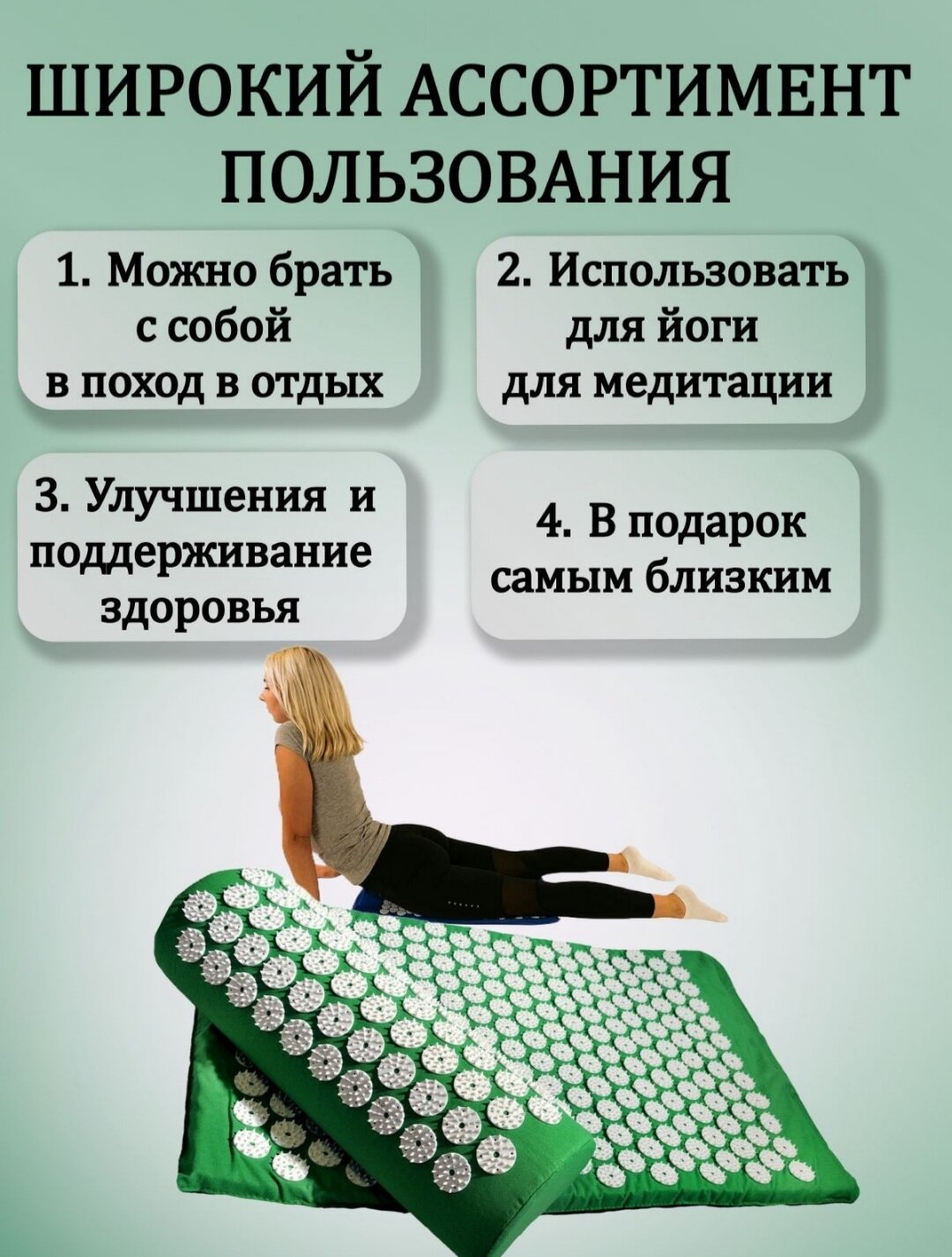 Массажный набор аппликатор Кузнецова 3 в 1 64.5x40x3 см, зеленый