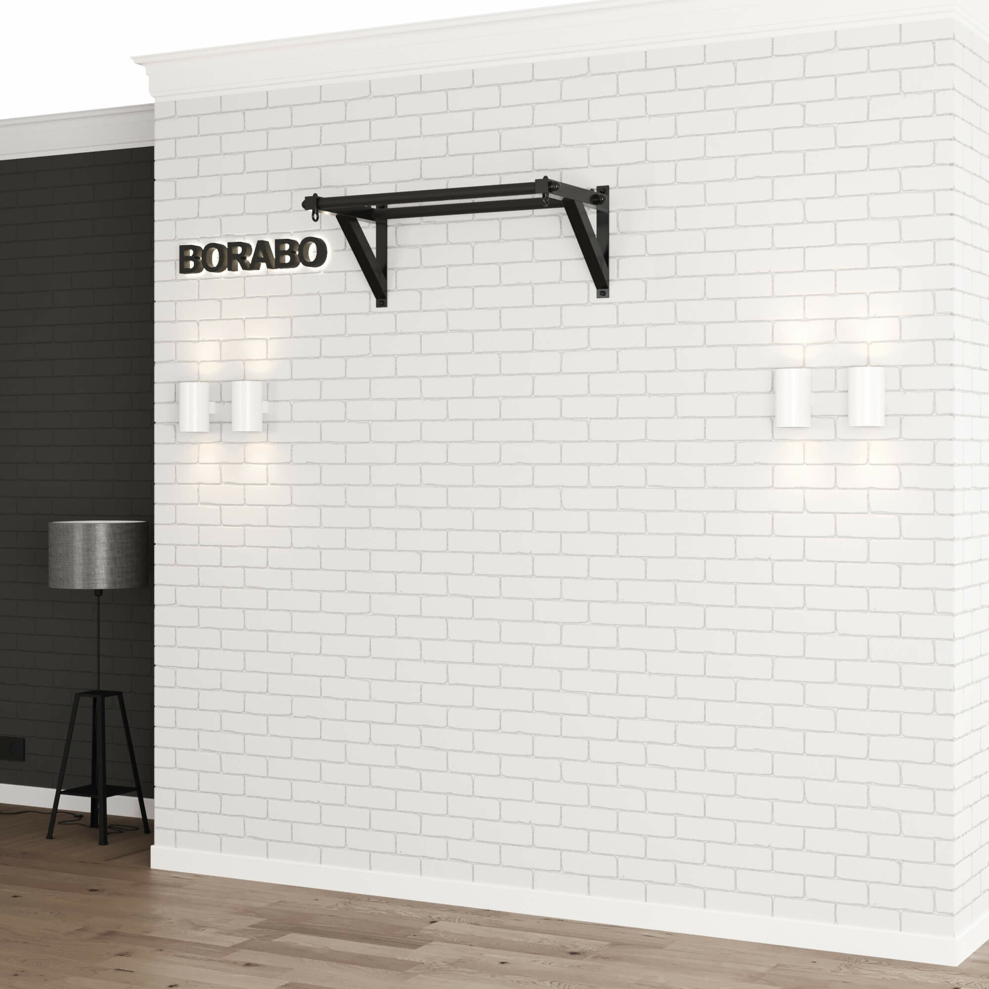 Турник настенный 2 хвата классик "BLACK" со стальным рифлением хватов