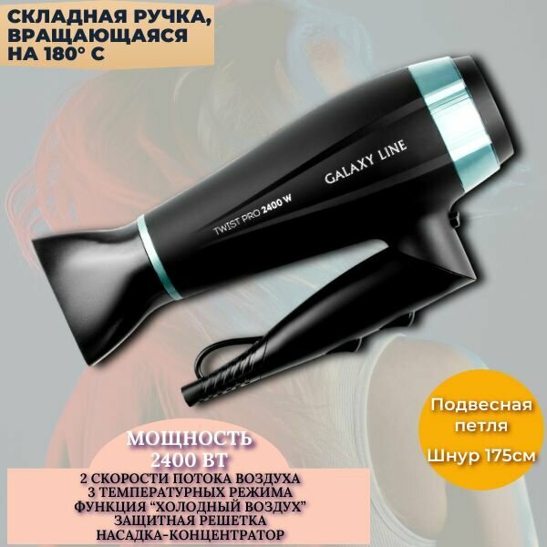 Фен GALAXY LINE GL4360, складной, с насадкой-концентратором, 1600Вт