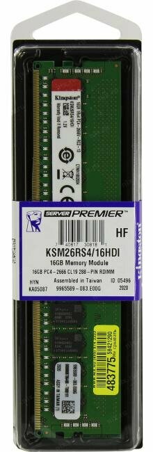 Память DDR4 Kingston KSM26RS4/16HDI 16ГБ DIMM, ECC, registered, PC4-21300, CL19, 2666МГц
