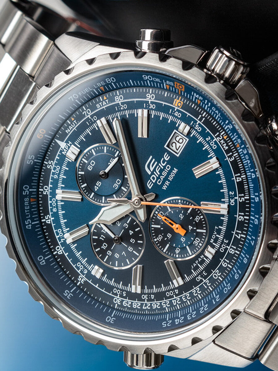 | Плюсы: | Точность, защита от воды, хронограф, логарифмическая линейка, качество циферблата, брутальность |