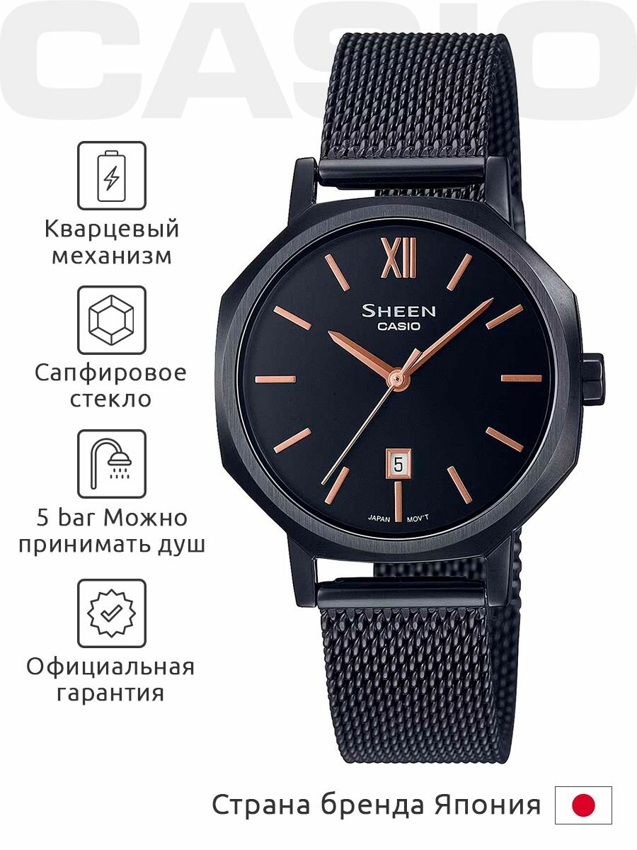 Наручные часы Casio Sheen SHE-4554BM-1A черные с черным циферблатом
