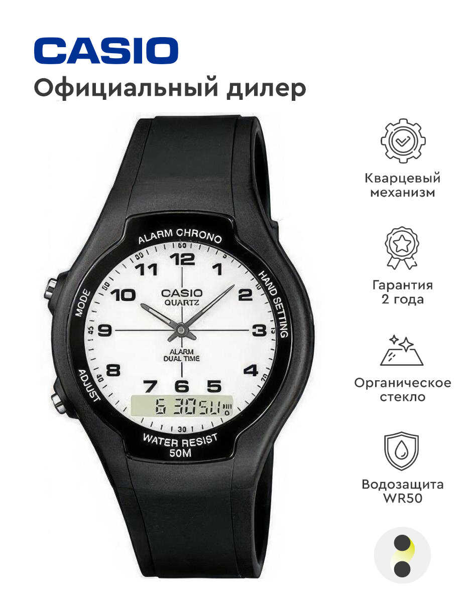 Наручные часы CASIO AW-90H-7B, черный, белый