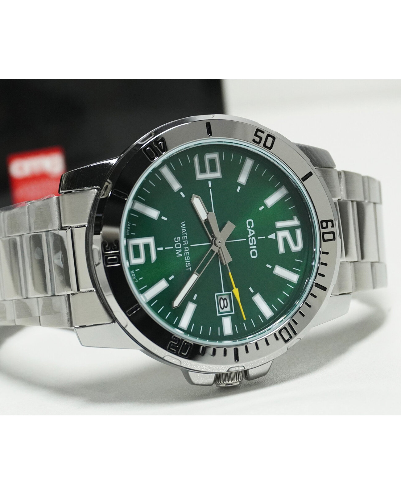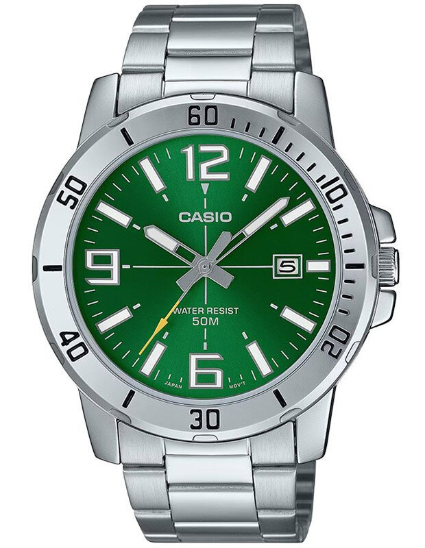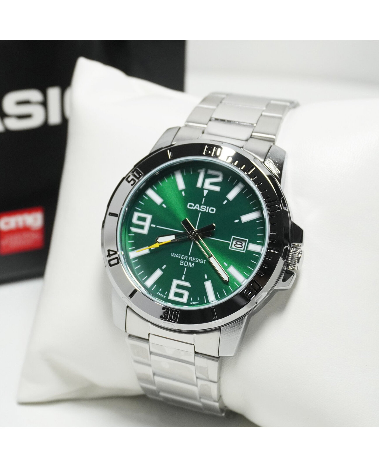 MTP-VD01D-7C Casio наручные часы кварцевые WR50 (5 атм) мужские серебряный, серый отображение числа подсветка стрелок минеральное стекло