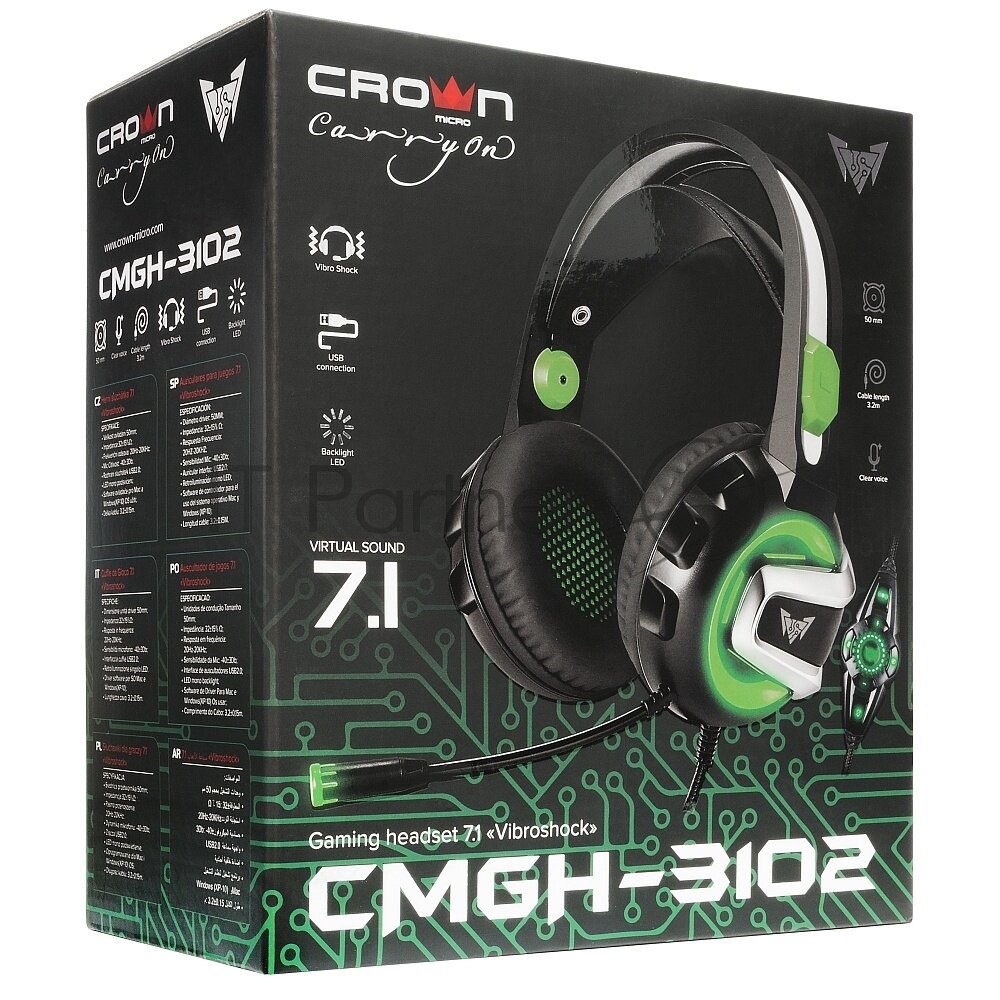 Гарнитура игровая CROWN CMGH-3102 Black&green