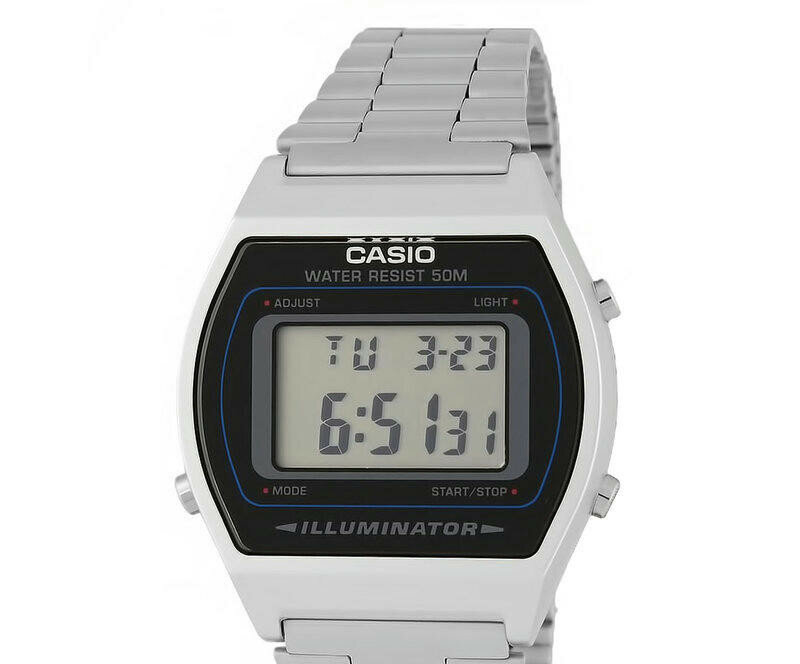B640WDG-7D Casio наручные часы кварцевые WR50 (5 атм) мужские, женские серебряный, хром секундомер, таймер обратного отсчета будильник отображение числа, отображение дня недели, отображение месяца подсветка дисплея акриловое стекло