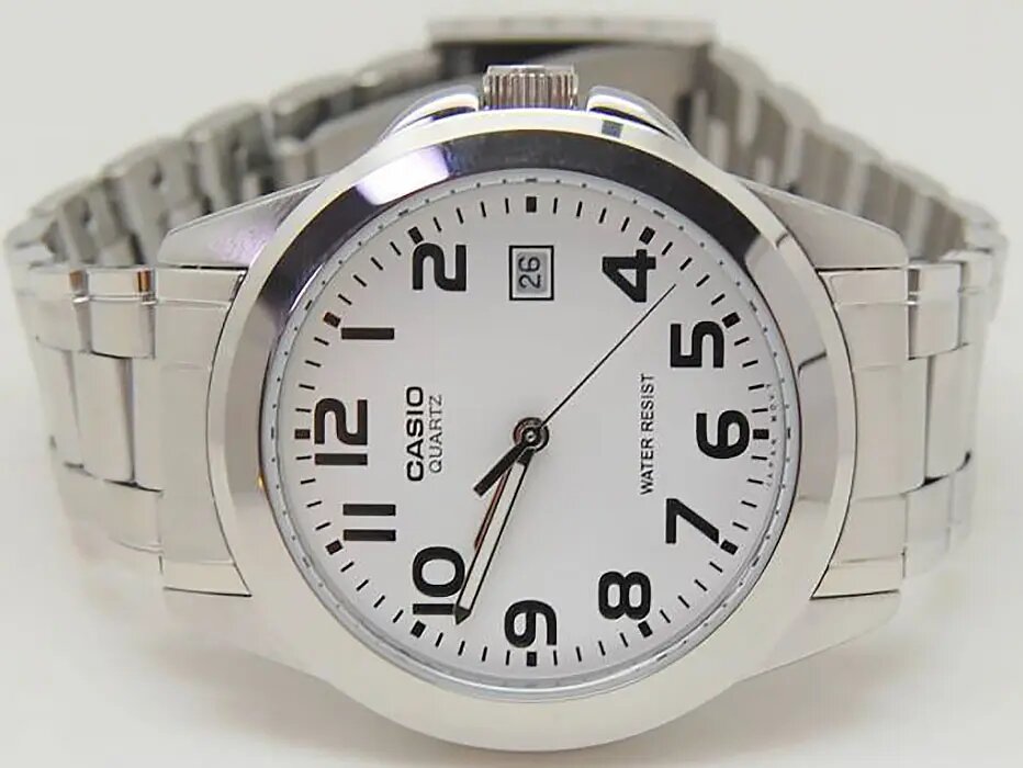 LTP-1259PD-1A Casio наручные часы кварцевые WR30 (3 атм) женские серебряный, черный отображение числа минеральное стекло