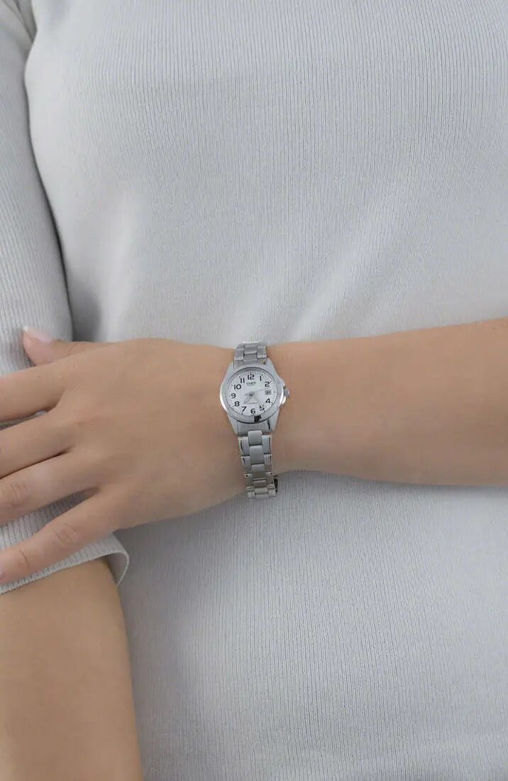 LTP-1259PD-7B Casio наручные часы кварцевые WR30 (3 атм) женские серебряный отображение числа минеральное стекло
