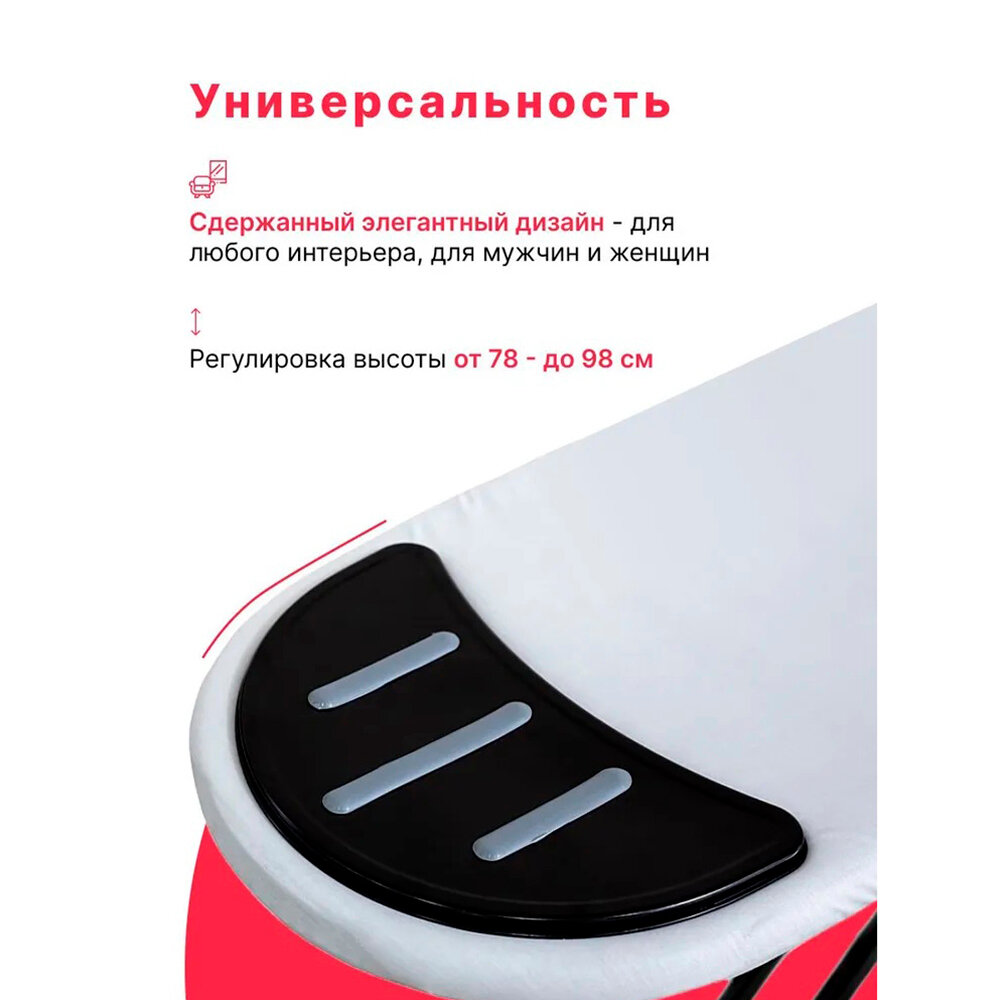 Устойчивая, жесткая конструкция, регулировка высоты, широкое полотно