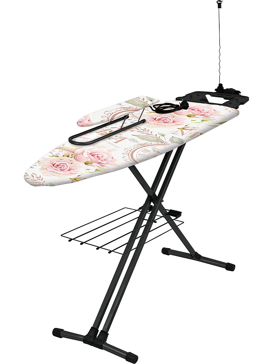 Доска гладильная InHome IN9M/2(1220х400 мм), подрукавник, удлинитель, полка (розовые розы)
