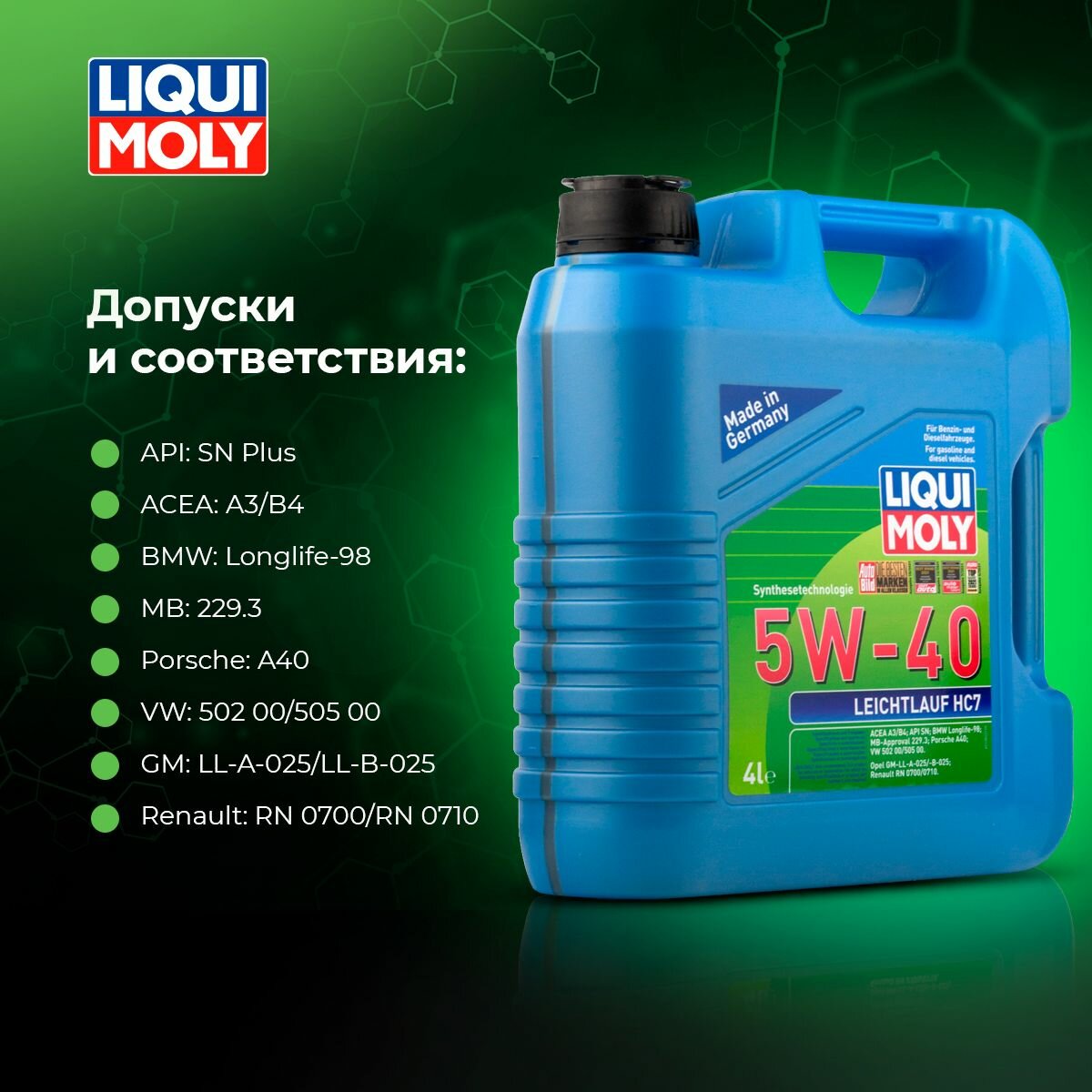 LIQUI MOLY Масло Моторное Leichtlauf Hc7 5W40 Синт.4л Liqui Moly интересное: