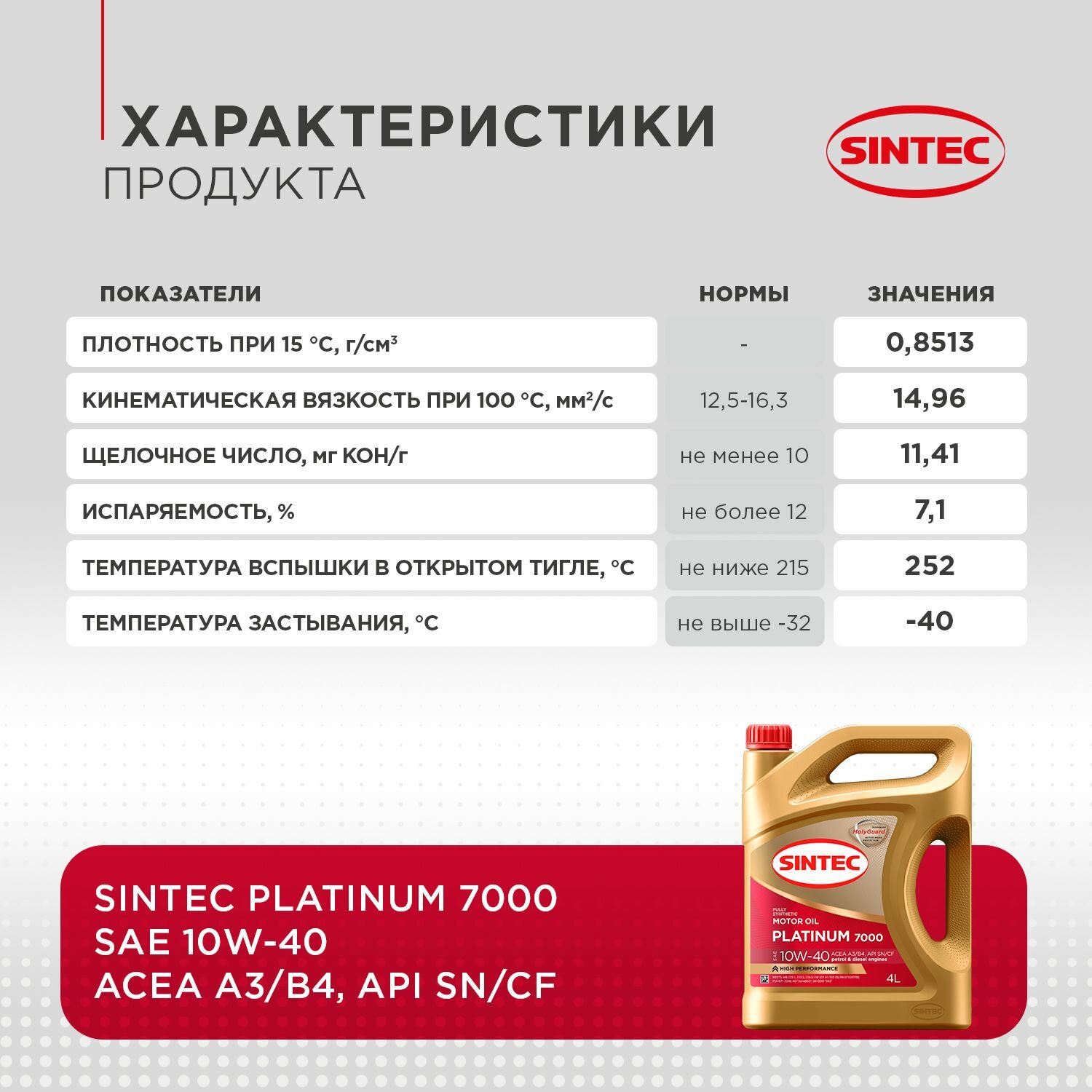 Sintec : 600166 PLATINUM 7000 SAE 10W40 API SN/CF A3/B4 1л