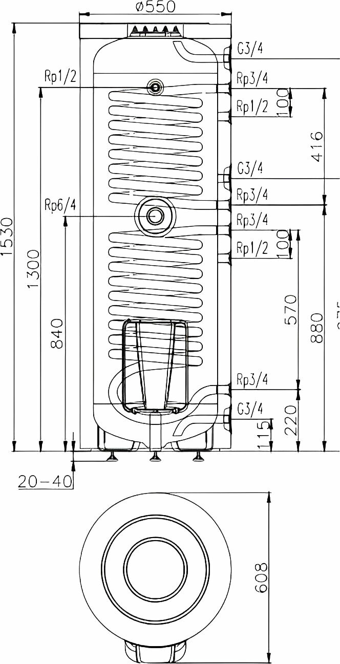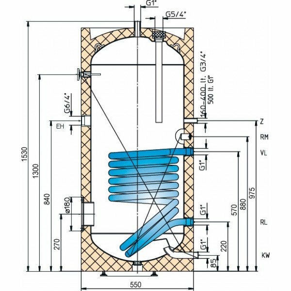 | Дополнительная информация | с нижним теплообменником и возможностью установки дополнительных ТЕНов; максимальная мощность теплообменника: 30 кВт; макс. давление воды: 7 атм; число теплообменников: 1; диаметр входа линии рециркуляции: ¾; вход линии рециркуляции |