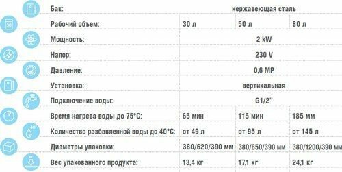 | Объем бака | 50 л |
