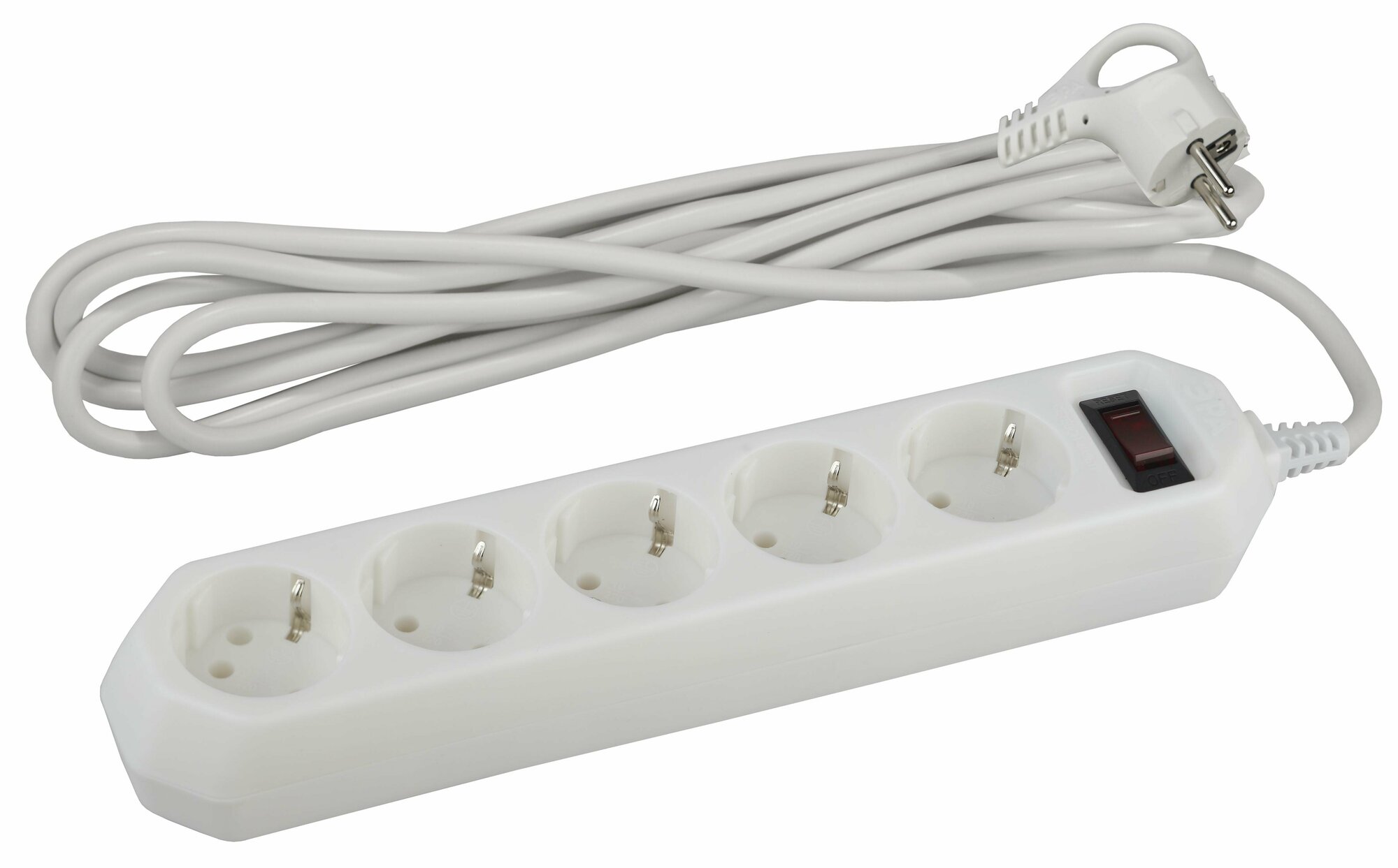 Сетевой фильтр ЭРА USF-5es-5m-W с базовой защитой с заземлением с выключателем 5 розеток 5м 10А белый
