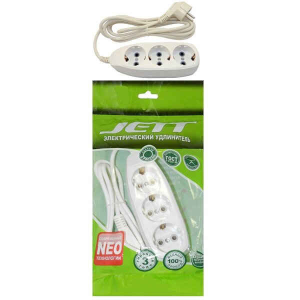 Сетевой удлинитель JETT ( джетт) РС-3 ,с заземлением,3 розетки,7 м.,белый