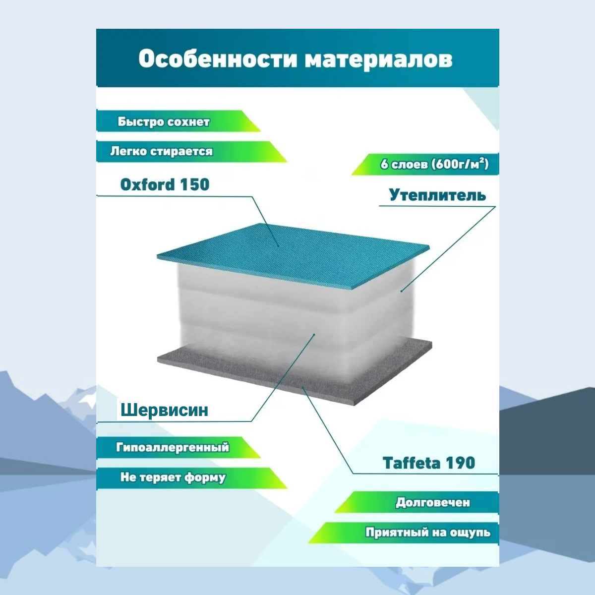 | Характеристики внешнего материала | oxford |