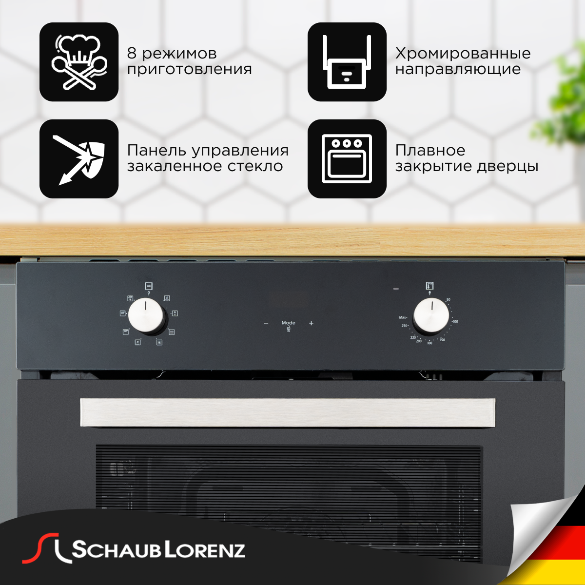 Электрический духовой шкаф встраиваемый Schaub Lorenz SLB EY6814, 60 см, черный, съемное стекло, паровая очистка, подсветка камеры
