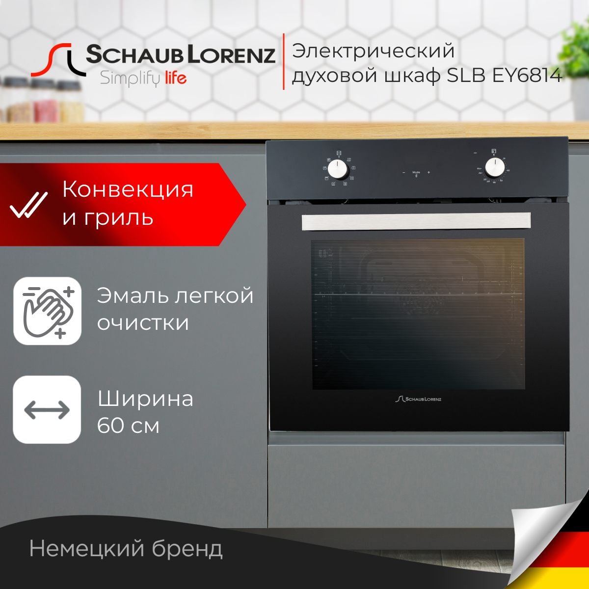 Купить Духовой шкаф встраиваемый Schaub Lorenz SLB EY6814, 65л, черное стекло, конвекция, гриль, размораживание